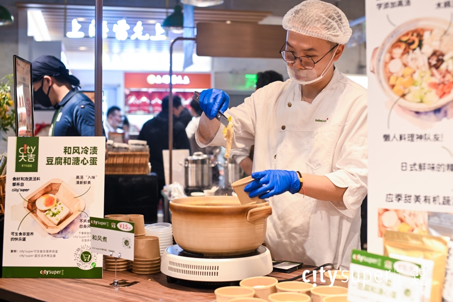 市集邀请了一坐一忘明星主厨团队用世界顶级食材创新中国菜,木姜子草芽烤和牛、酸笋和牛饵块布里干酪等菜品融合中西烹饪精髓,用东方创意演绎世界风味,city'super联合利和味道研发的盐烤炭烧伊利比里亚猪肋排和热压芝士三明治等大吉小食弥漫的香气引人驻足,并隆重推出“熊鲜生中式点心系列”,酒咖专区、多个创意甜品与热食档口纷纷回归,让顾客一站式品味寰宇世界的多元味觉。